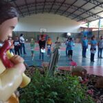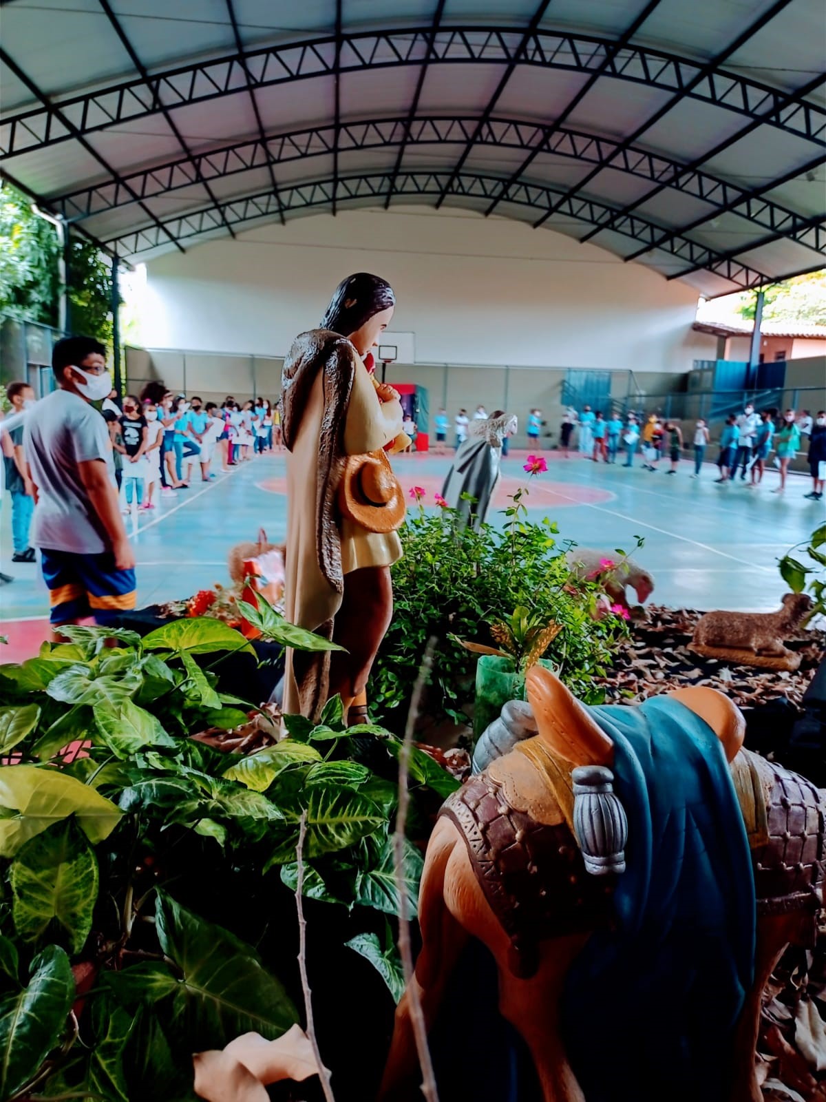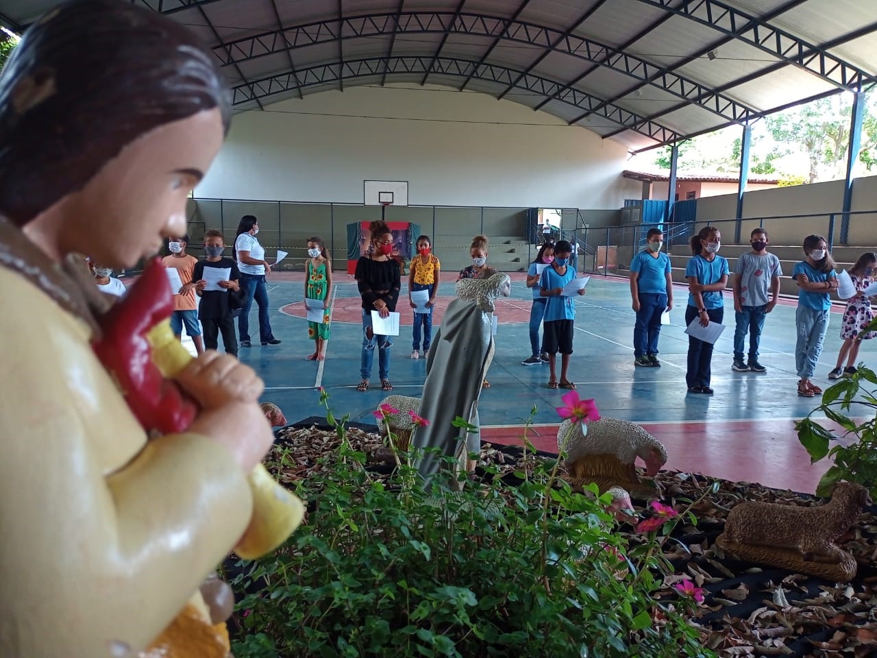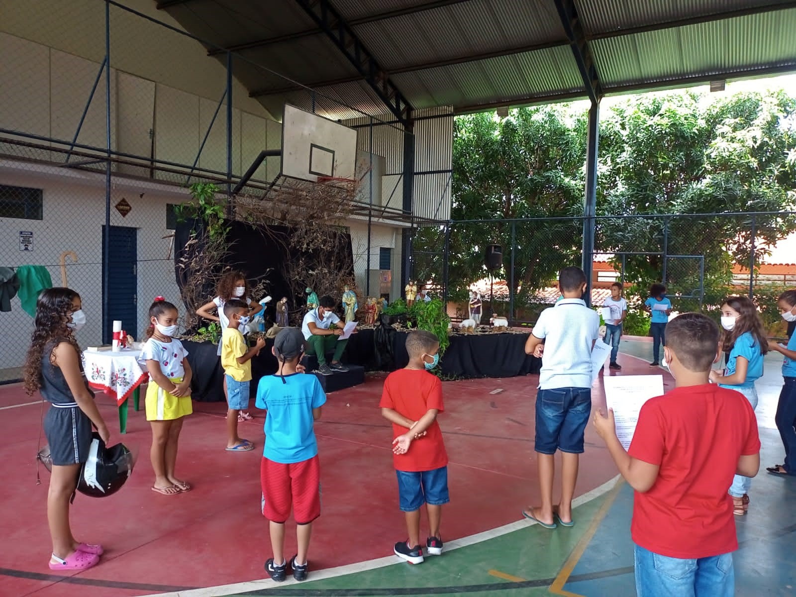 As crianças e os adolescentes compareceram e uma pequena celebração foi organizada pelos educadores, em um cenário preparado com riquíssimos detalhes natalinos e um presépio onde foi entronizada a imagem do Menino Jesus.