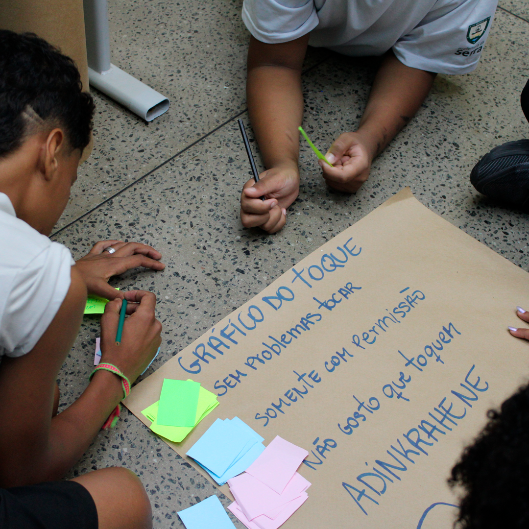 Como parte das ações educativas relacionadas ao 18 de Maio — Dia Nacional de Combate ao Abuso e à Exploração Sexual de Crianças e Adolescentes, o Projeto Vida promoveu com as crianças e adolescentes as atividades “Semáforo do Toque” e “Gráfico do Toque”, duas propostas interativas e dialogadas, voltadas para o fortalecimento da autoproteção.