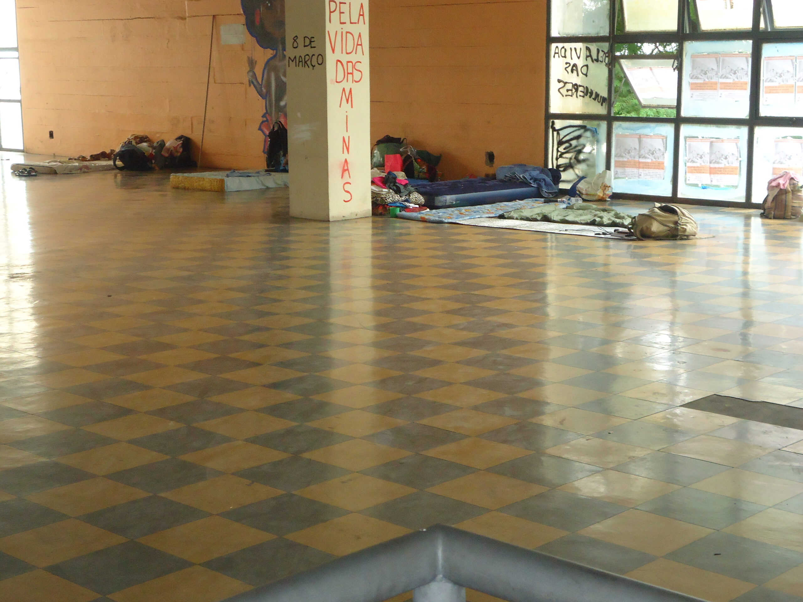 Os Moradores de Rua estão sendo solidários, ao colaborar para defender o prédio de dois andares da polícia e ajudam a fazer alimentação e organizar os espaços imundos, maltratados e abandonados há mais de dez anos pelo governo.