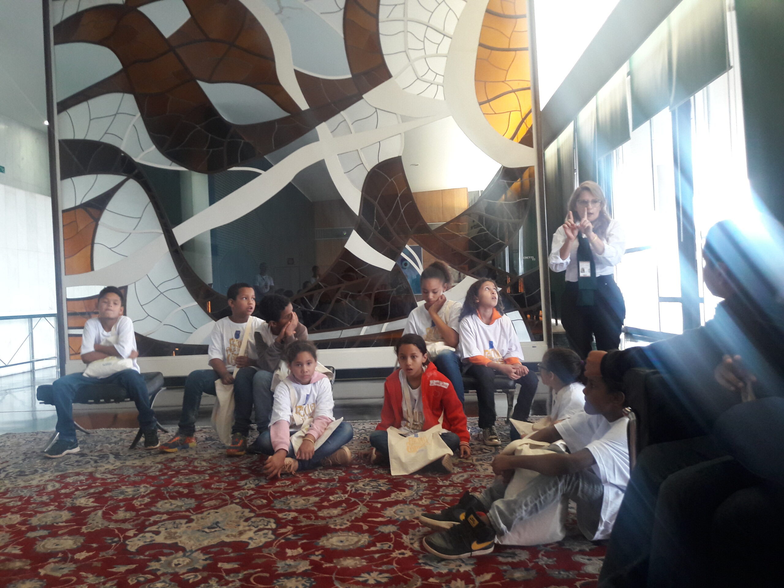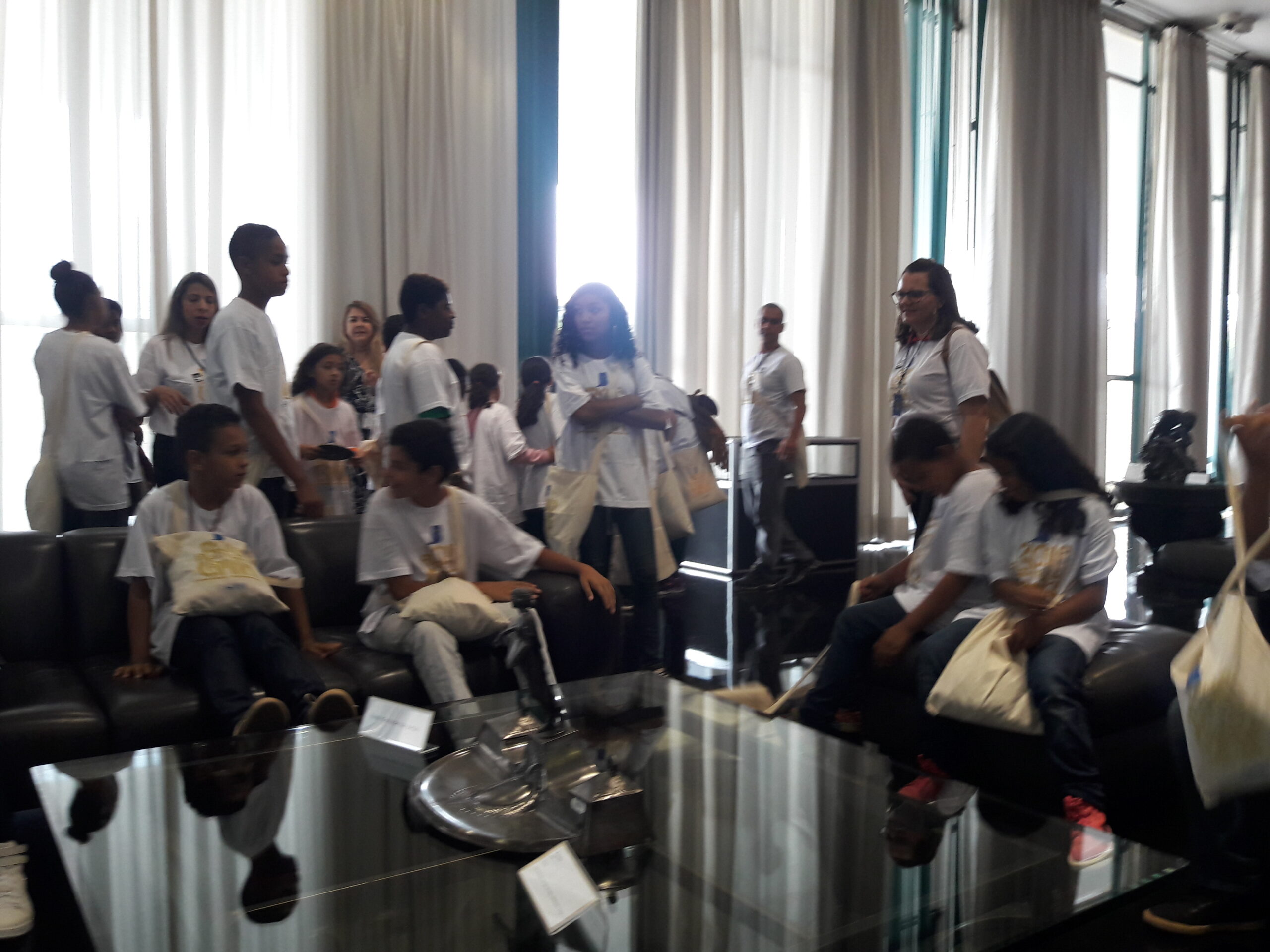 Durante a visita, as crianças e os adolescentes conheceram o Museu da Câmara e viram as obras de Artes dos Artistas Athos Bulcão e Marianne Perette, além da maquete do congresso e o Plenário da Câmara do Deputados.