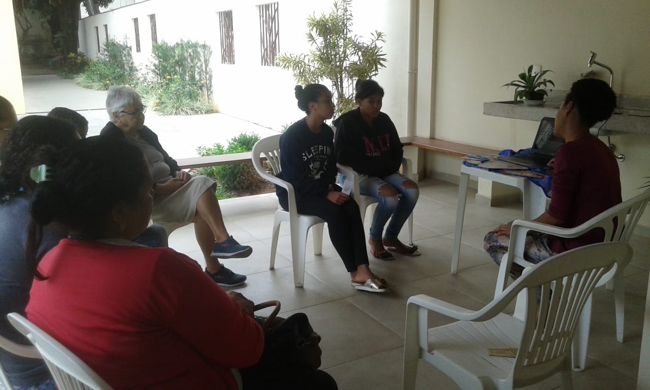 Foi um encontro agradável e descontraído! Iniciamos com um breve momento de oração na capela da Comunidade e seguimos para um cafezinho. Depois, a Ir. Conceição Reis e eu conduzimos uma reflexão sobre a História do Instituto SCM através da vida do Pe. Gailhac e da Ir. Mª de Aquino, na qual os adolescentes interagiram e fizeram perguntas. Após essa reflexão, nossos visitantes puderam conhecer a casa e conversar com as Irmãs, que ficaram muito contentes com a presença deles. Antes disso, porém, curtimos uma boa pipoquinha com suco, carinhosamente oferecidos pela Comunidade!